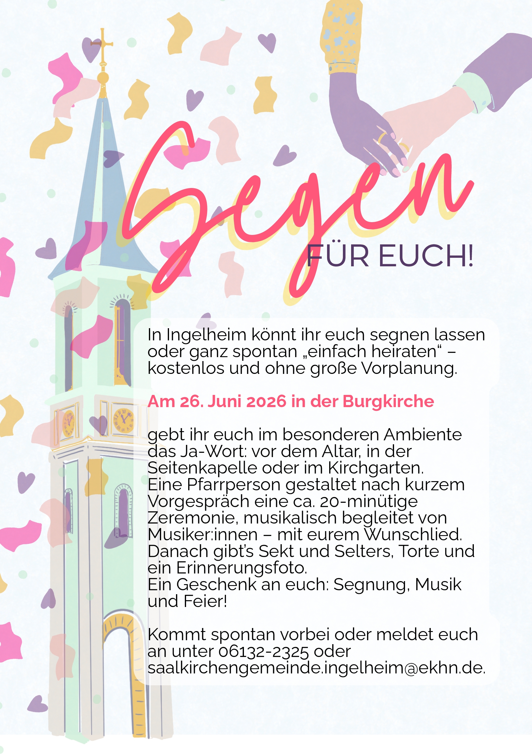 Mittwochs zwischen 14.00 und 16.00 Uhr im Anbau der Saalkirche.